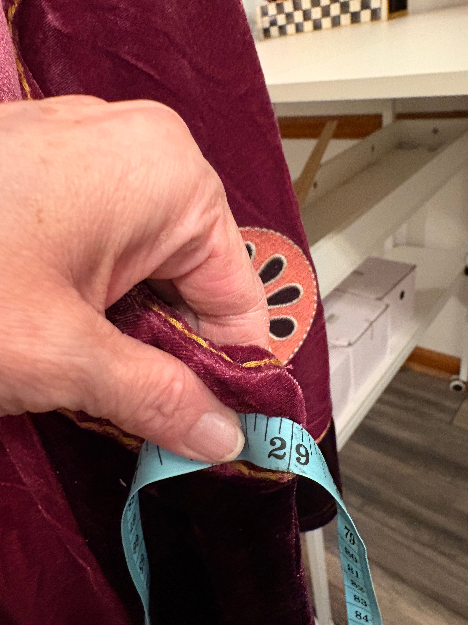 Upcycled embroidered Velvet and beautiful hand blocked cotton voile fabric. Absolutely gorgeous!! Has embroidery, ruffles, vneck and flare sleeves. Midi length. The Love Tabi Collection is all handmade, original, one of a kind designs!!! This dress is very oversized and will fit a Medium to XXL. ***It will be more oversized the smaller you are. Please check measurements before purchasing!!!!***** Oversized and flowy!!!!