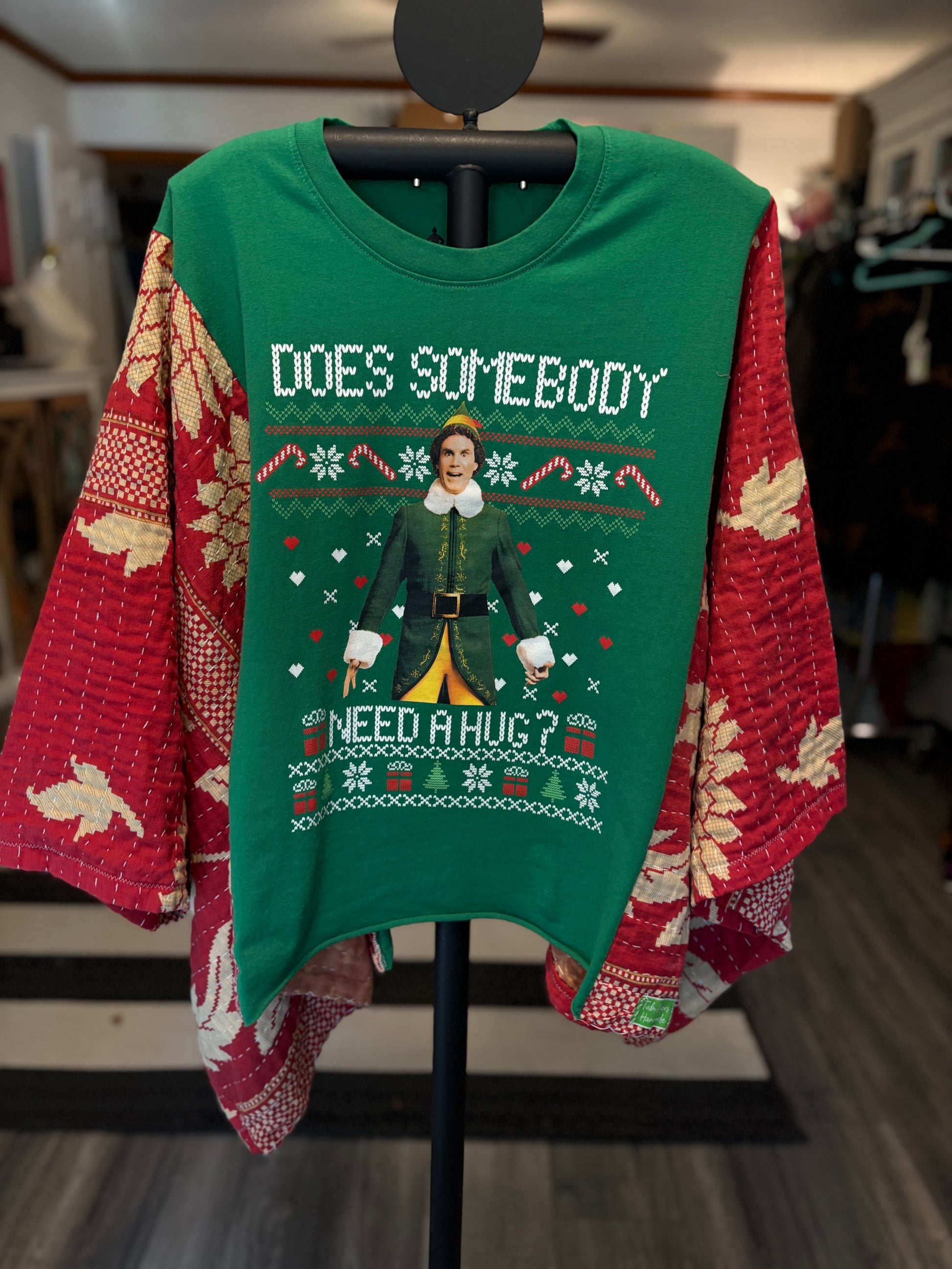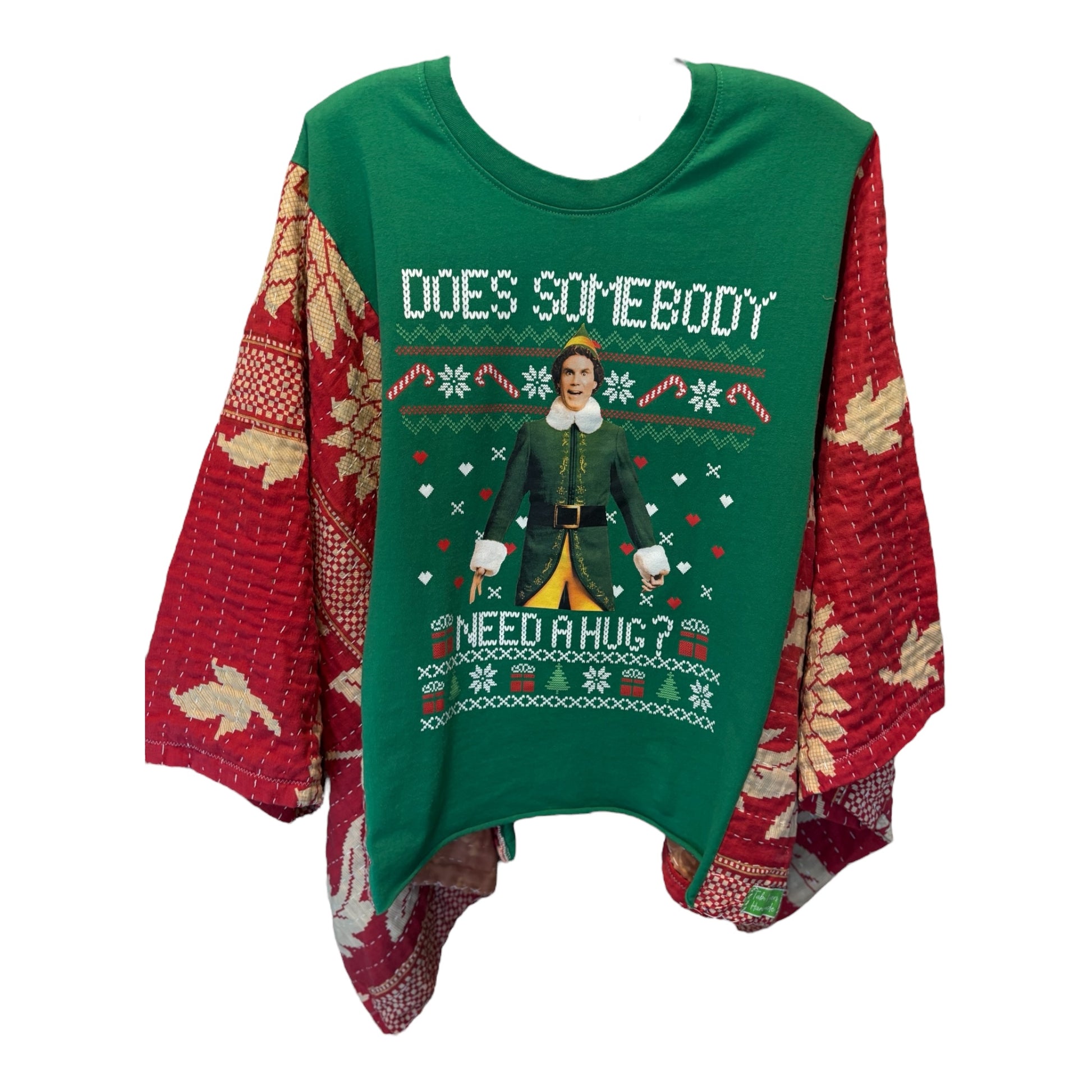 Beautiful vintage Kantha quilt and graphic tee paired to make this FABULOUS Upcycled tee. Vintage Kantha quilts have been well loved. They may have white strings (which can be cut) , slight holes, small stains,and may be weathered, rustic and tattered which all lends to the vintage beauty of the top. Perfectly imperfect!!
