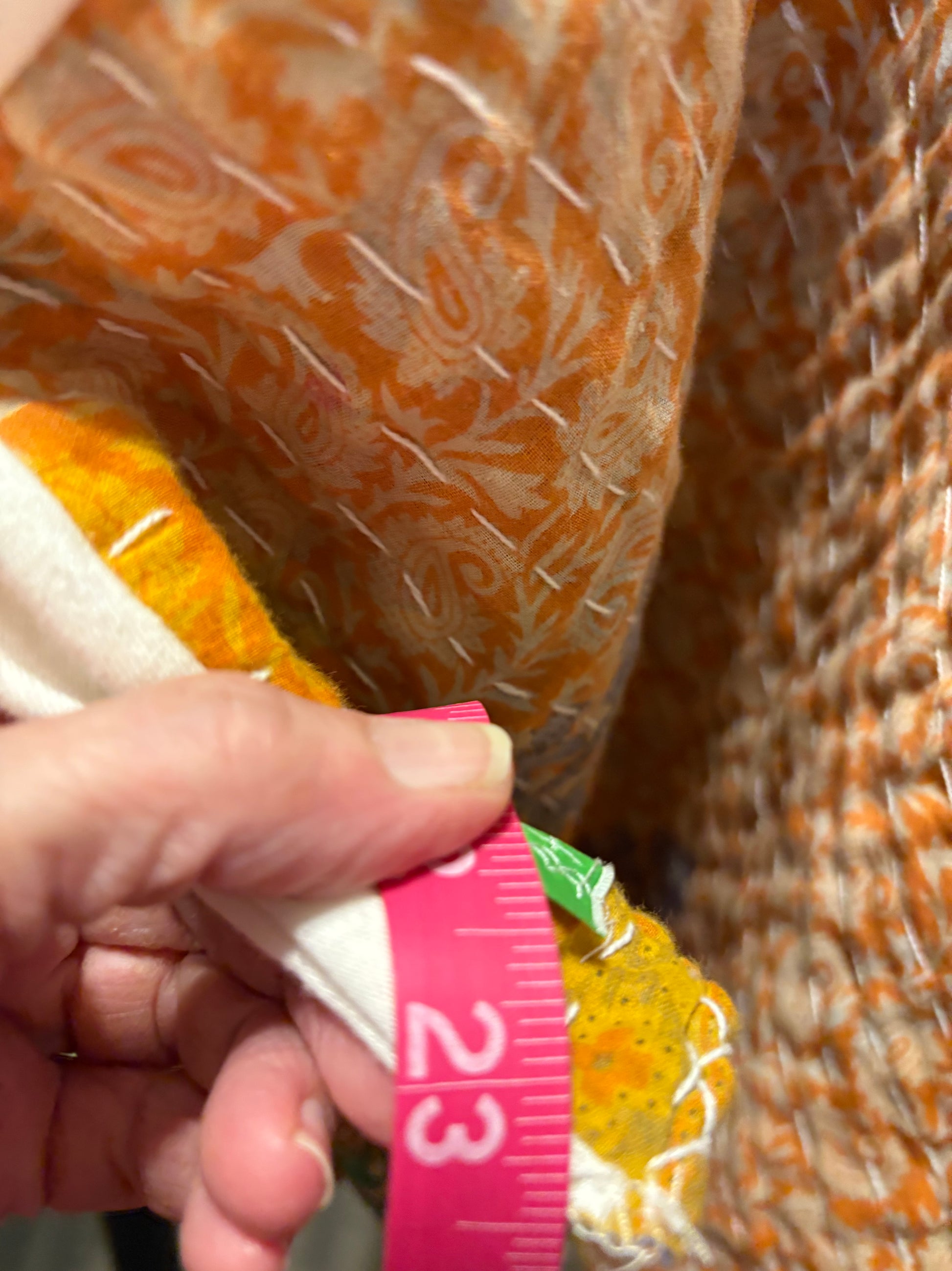 Beautiful vintage Kantha quilt and graphic tee paired to make this FABULOUS Upcycled tee. Vintage Kantha quilts have been well loved. They may have white strings (which can be cut) , slight holes, small stains,and may be weathered, rustic and tattered which all lends to the vintage beauty of the top. Perfectly imperfect!!