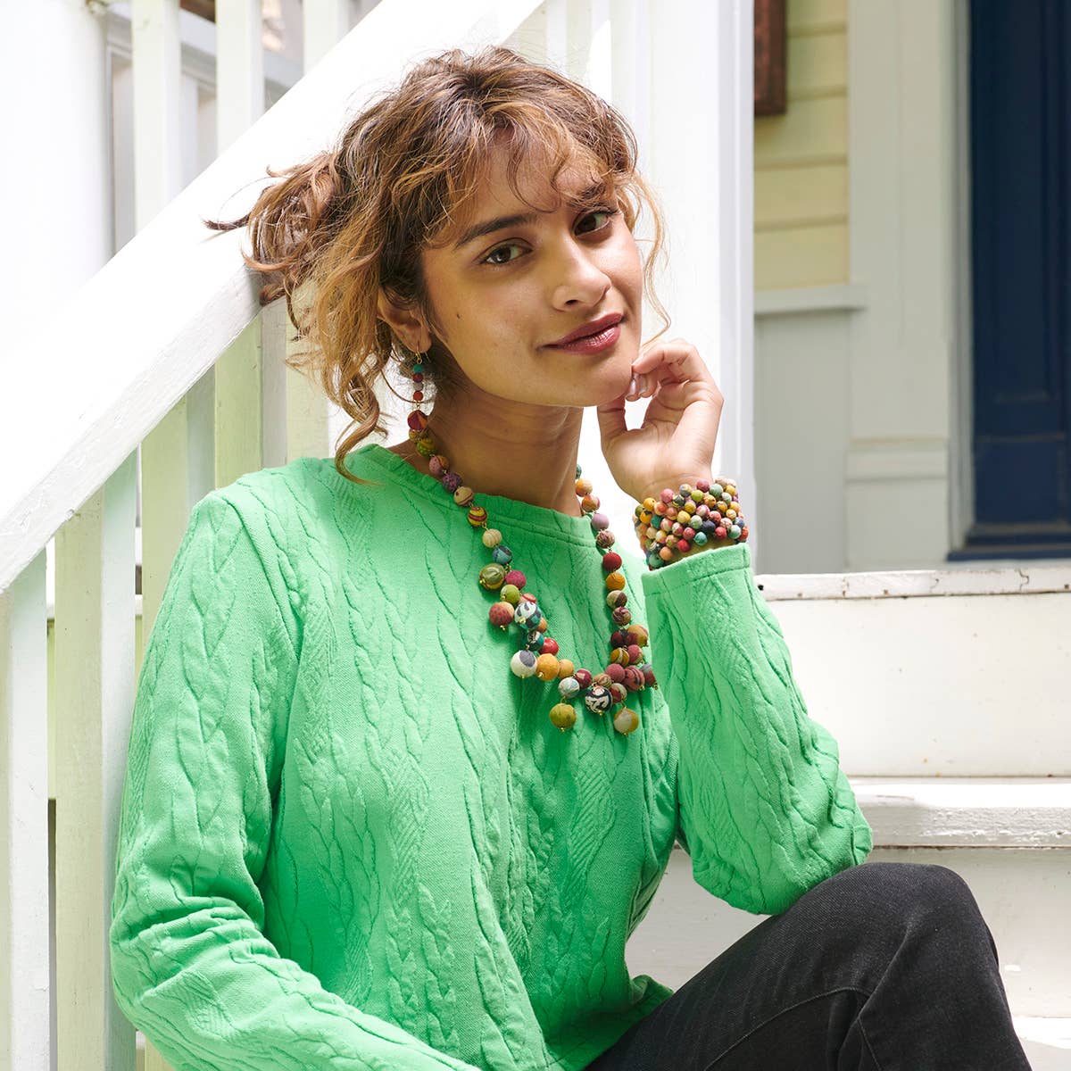 This bold statement piece has seven layers of colorful kantha beads that are woven checkerboard-style to form a gorgeous bracelet of multihued goodness! * This style does run small *